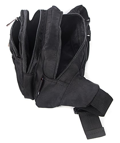 -. Feature : Material: High intensity and durable Nylon / Zipper closure. FIVE compartments for you to assort different items, water bottle, money, keys, cards, small umbrella, and other things / Adjustable Flexible Straps --- Convenient to adjust the bag shoulder and waist straps to approP.R.Iate size. / Size: 24cm(L)*13cm(H)*11cm(D). Waist length:40-70cm, strap width:3.8cm , Bag weight :0.23kg / Perfect for hunting, camping, travel, mountain, trekking, tactical, outdoor, cycling saddle bag