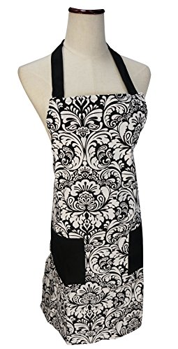 LilMents Floral Patterned Canvas Apron Kitchen Chef Cake Baking Cooking Cleaning (Black)