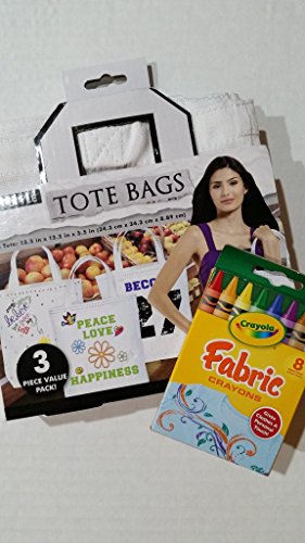 Set of 3 Self Decorating Canvas Tote Bags & Fabric Crayon Set