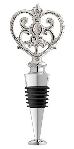 Epic products'' vintage chic heart bottle stopper is a beautiful display piece, as well as a bottle stopper. It features antique-finished scrolling heart, polished metal pedestal base and graduating rubber seals. Epic products Inc. Has been offering high quality wine, spirits and party accessories & gifts for over 30 years.