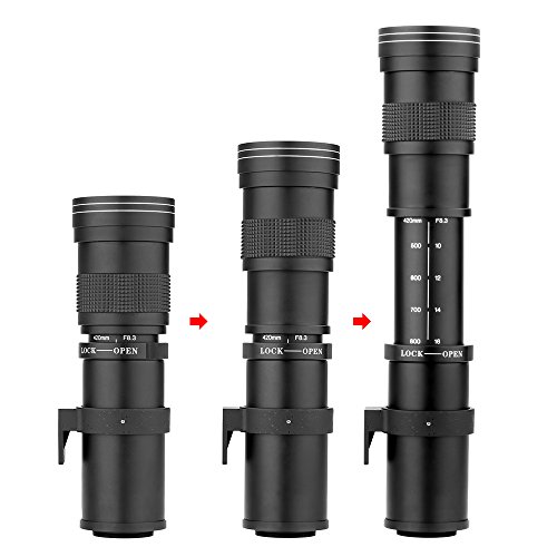 원본상품명: Andoer 420-800mm F/8.3-16 HD 超望遠 マニュアル ズ?ムレンズ T-マウントT / T2アダプタ?リング付き キヤノンEOS 760D 750D 7D2 5D3 5DR 5