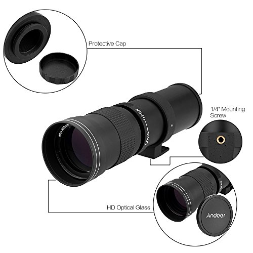 Andoer 420-800mm F/8.3-16 HD 초 망원 메뉴얼 줌렌즈 T-마운트T / T2어댑터 링 부착 캐논EOS 760D 750D 7D2 5D3 5DR 5