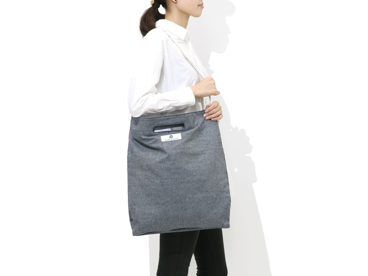 深さを備えた大きめのつくりで、男性はもちろん、女性にも少しメンズライクな雰囲気がおすすめの仕上がり。マチを設けず、すっきりとしたシルエットで、トートにもショルダーにも持ちやすいデザインとなっています。