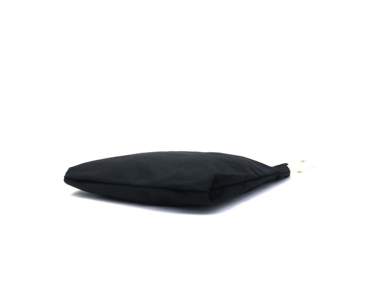 A4サイズが余裕をもって収納できます。収納口にはジップ開閉を採用し、不用意に中身が見えない、安心感のあるつくり。背面にはスナップボタン式の大きめのポケットを備え、小物やチケットなども分けて収納しておくことができます。
