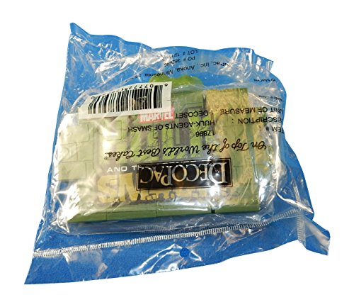 Imagine the joy and excitement on your birthday child's face when you uncover their cake that features the Incredible Hulk in his famous SMASH pose. Kit includes a Hulk action figure and a four-piece SMASH wall that comes apart and re-assembles quickly and easily. When the party has ended and the cake is but a memory, your child can play with the action toys or keep this souvenir on his bedroom shelf to treasure for years to come. Made from sturdy plastic, these items are as rugged and tough as the kids they are intended for. Includes clear plastic liner trays to set in the cake frosting to keep both the Deco Set pieces and the cake clean. 0