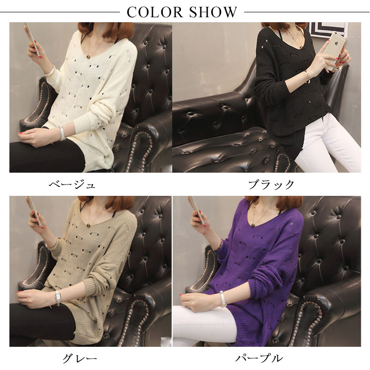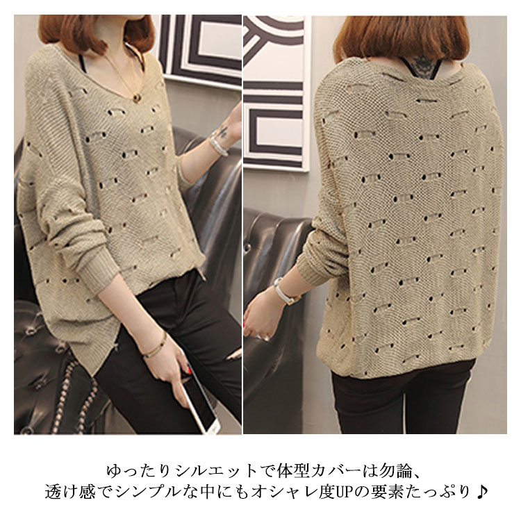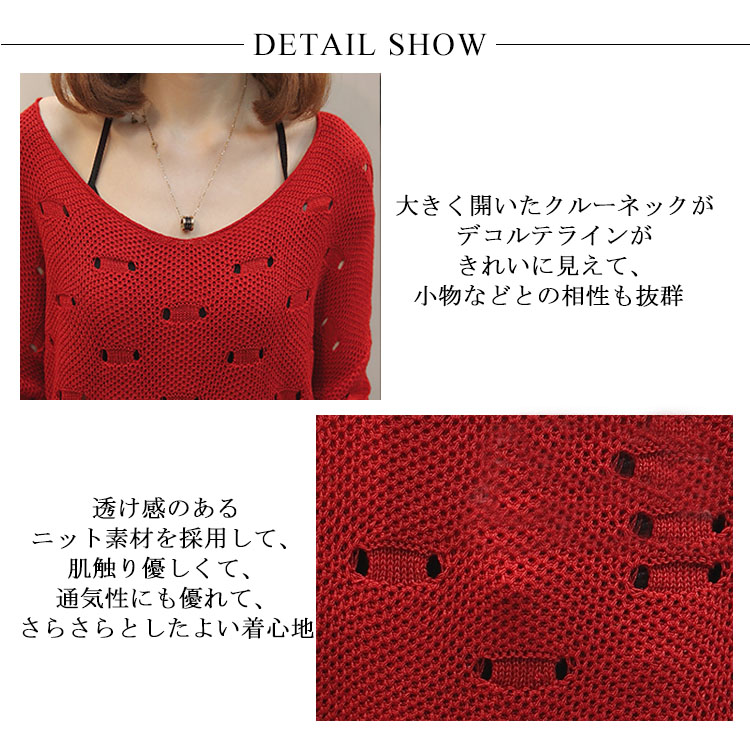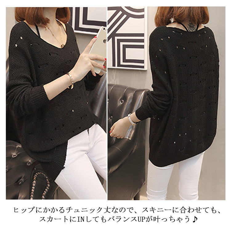| シンプルを楽しむ、ニットプルオーバー。優しいニット素材を使用し、肌触りの柔らかい着心地に仕上げました。ゆったりシルエットで体型カバーは勿論、透け感でシンプルな中にもオシャレ度UPの要素たっぷり♪ヒップにかかるチュニック丈なので、スキニーに合わせても、スカートにINしてもバランスUPが叶っちゃう♪ | |
