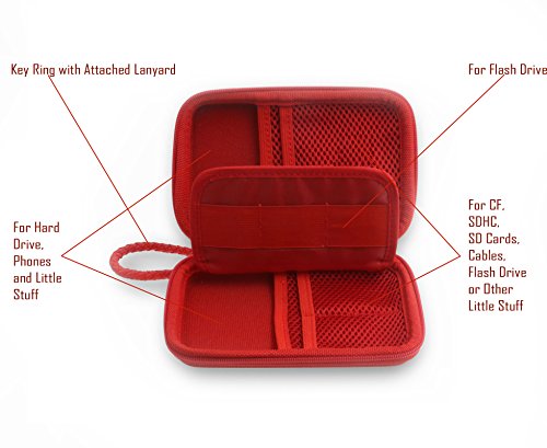 - Title : ZHPUAT Portable External Hard Drive Case Shockproof Carrying Case + Key Ring with Attached Lanyard - Red