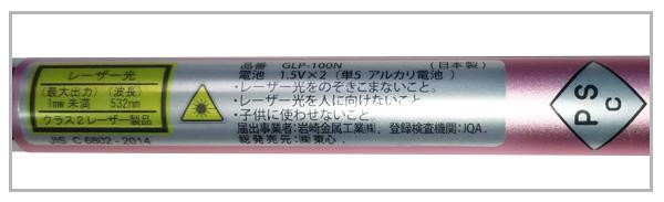 | 仕様 | レーザー素子:可視光緑色半導体レーザー レーザー出力:1mW未満(JIS規格クラス2以下) 波長:532nm ビーム径:5m先で7~10mm 到達距離:約150~200m 電源:単5アルカリ乾電池×2本 電池寿命:連続使用で約2時間 使用温度:25度±5度 |