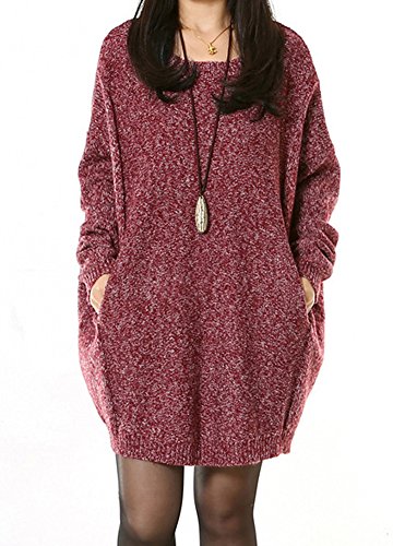 -. Feature : Einfacher Entwurf,Loose Fit Stil / Rundhalsausschnitt,Fledermausärmel,Seitentaschen / Handwäsche oder Dry Clean / Modell Informationen:Höhe:162cm,Gewicht:48kg / Länge:78cm//30,7",Brustumfang:154cm//60,6",Taille:146cm//57,5",Rand:120cm//47,2"