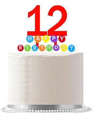 Item#012WCD - Happy 12th Birthday Party Red Cake Topper & Rainbow Candle Stand Elegant Cake Decoration Topper Kit