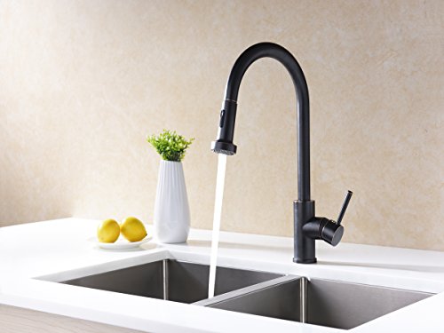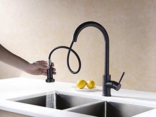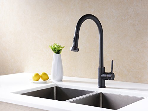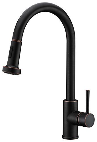 KVADRAT Best Antique Single Handle Solid Brass Pull Out Sprayer Oil Rubbed Bronze Kitchen Faucet, Bronze Color Pull Down Kitchen Sink Faucet
