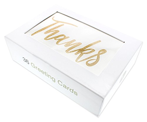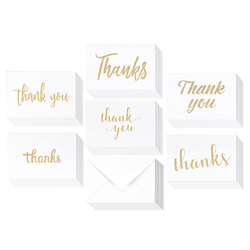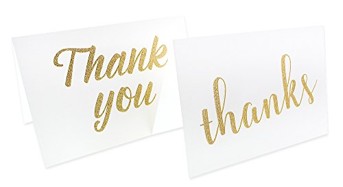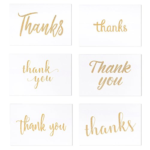 36 Pack Blank Thank You Gold Glitter Greeting Cards 6 Golden Glitter Sprinkle Style Designs Bulk Box Set (4 x 6 inches)