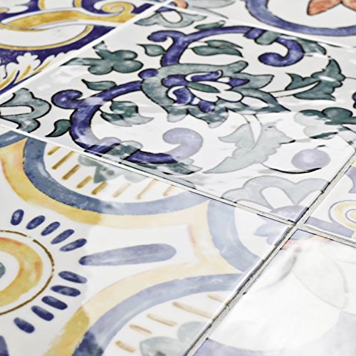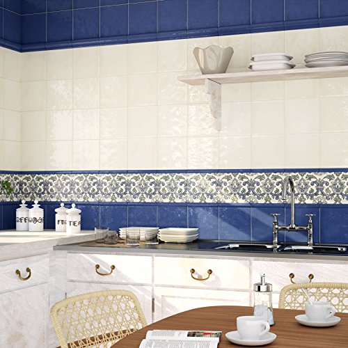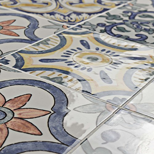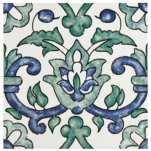 SomerTile WAEBOUGA Loire Ceramic Wall Tile, 7.875" x 7.875", White/Green/Blue