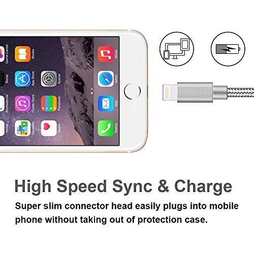 Suanna Lightning Cable, 3Pack 3FT,6FT,10FT Certified Nylon Braided Cord iPhone Cable Certified to USB Charging Cable for iPhone 7, 7 Plus, 6S, 6+, SE, 5S, 5, iPad Air/Mini, iPod Nano 7 - Grey