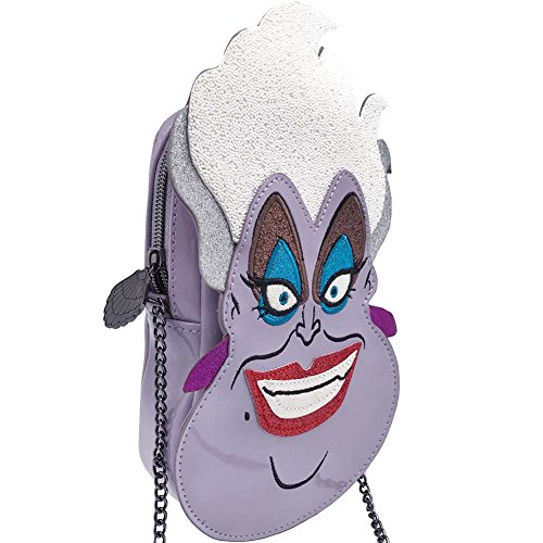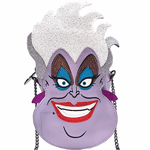 Only a poor, unfortunate soul would pass up on The Little Mermaid Ursula Crossbody bag from Danielle Nicole. This cute crossbody bags features a Ursula face with glitter detail on a patent leather base. Don't be afraid to show off your inner villainess in style.Feature
