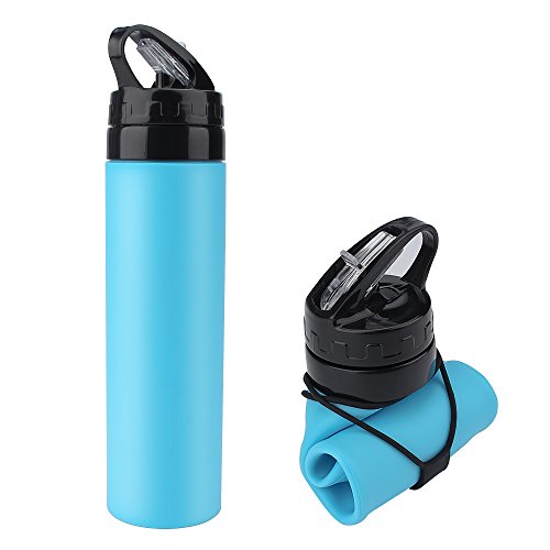 -. Title : ARCHEER Foldable Water Bottle Collapsible Silicone Bottle FDA-approved Sports Canteen Roll Up Cup for Outdoors, Hiking, Camping, Biking and Traveling - 600ml(Blue)
