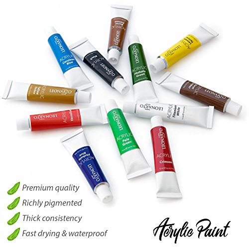 - ★ LEONARTO ACRYLIC PAINT SET 12 * 12 ml - aluminum tubes with 12 assorted colors. Heavy body acrylic paints set can become perfect painting kit for artists, kids, adults, beginners and professionals.