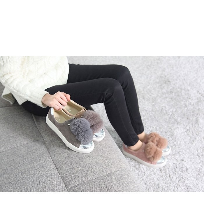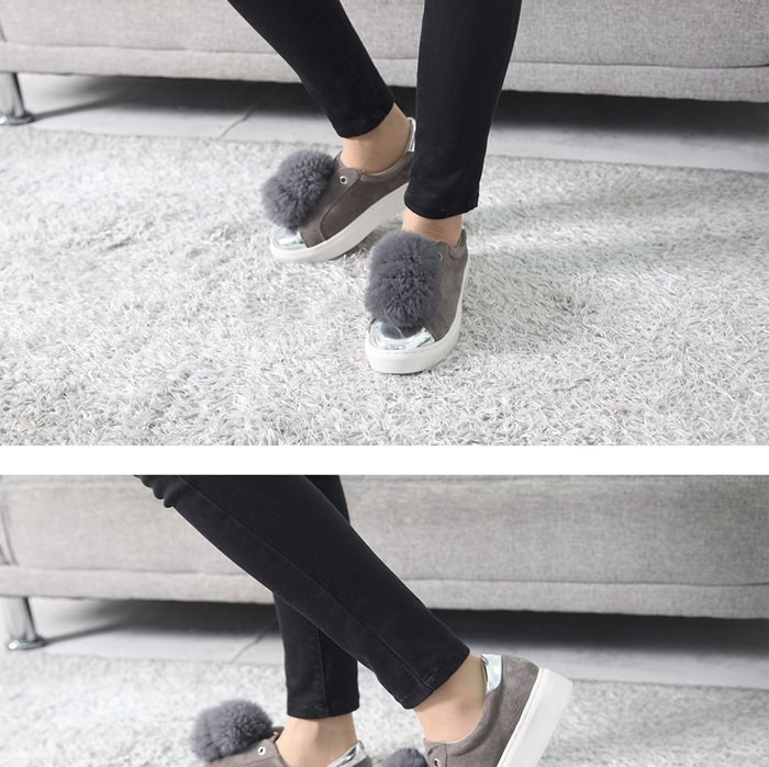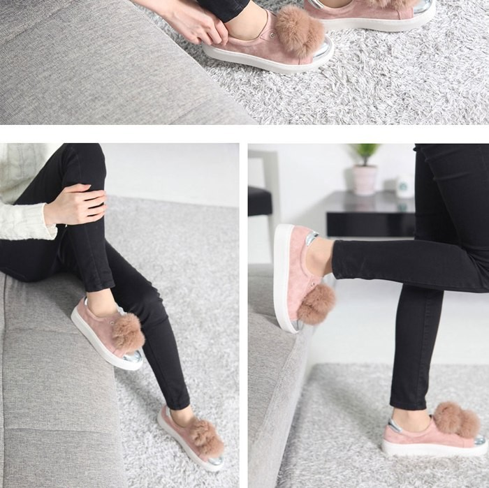 商品名:スリッポン レディース スニーカー スエード調 ラビットファー 2017 秋冬 ファッション 靴 婦人靴