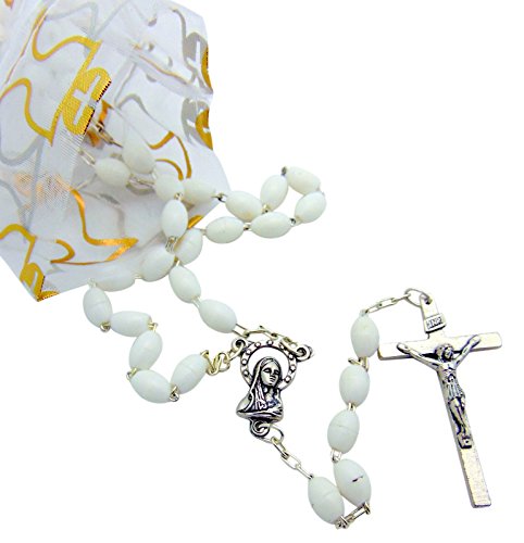 -. Binding : Jewelry -. Brand : Westin Works -. Department : girls -. EAN : 0758576710297 -. Feature : Rosary Size: 18" long with 1 1/2" metal crucifix & metal centerpiece. / Crucifix & Centerpiece is metal. / Beads are made of plastic / This item was made in Italy / Includes organza bag with chalice design -. Label : WJHCo -. Manufacturer : WJHCo -. Model : 290-002 -. MPN : 290-002 -. PartNumber : 290-002 -. ProductGroup : Jewelry -. ProductTypeName : FASHIONOTHER -. Publisher : WJHCo -. Studio : WJHCo -. Title : Girls First Communion White Bead Rosary with Organza Bag -. UPC : 758576710297