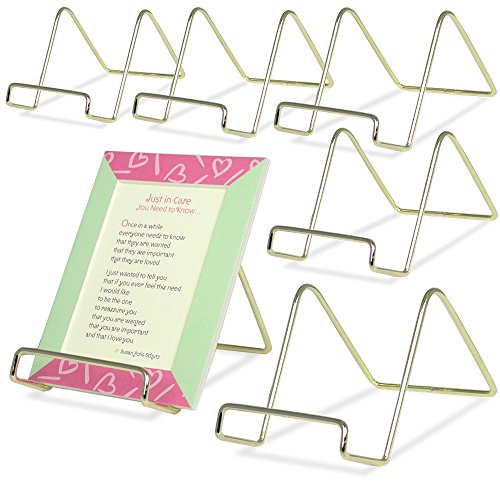 Wire Easel Display Stand Plate Holders - Smooth Brass Metal - 3"H - Pack of 6 Pcs