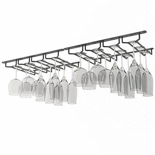 JMiles Under Cabinet Hanging Stemware Rack Hold Up To 24 Wine Glasses (Black)