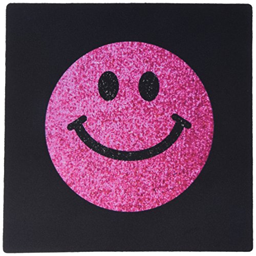 3dRose LLC 8 x 8 x 0.25 Inches Mouse Pad, Hot Pink Girly Smiley Face Glittery Texture Graphic Not Actual Glitter Or Sparkles On Groovy Black (mp_123157_1)