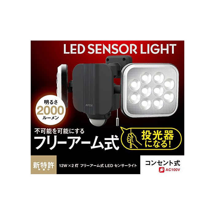 원본상품명: ムサシ RITEX フリアム式LEDセンサライト(12W×2) 「コンセント式」 防雨型 LED-AC2024