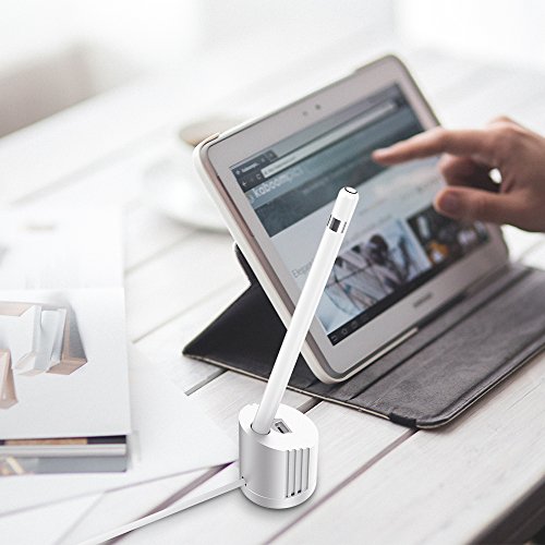 Charger Stand for Apple Pencil, Simpeak Aluminum Apple iPad Pencil Charging Dock with Built-in Charging Cable (4.9FT), Silver