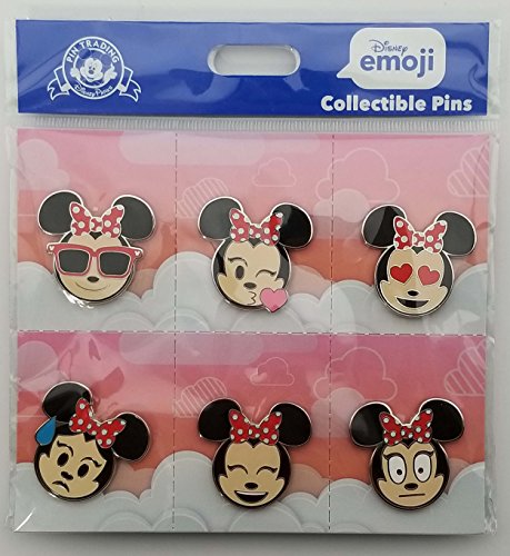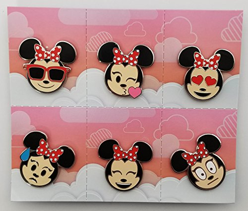 - The six pins in this set are Minnie emojis depicting heart eyes, kiss, sunglasses, nervous, grin, and scared.