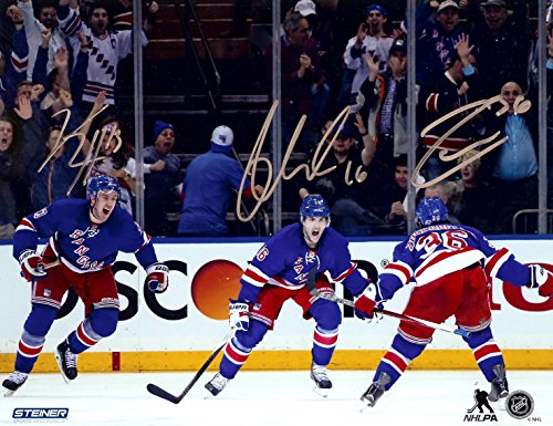 New York Rangers Mats Zuccarello, Derick Brassard, and Kevin Hayes Autographed 8x10 Photograph (Trio)