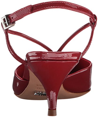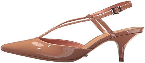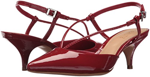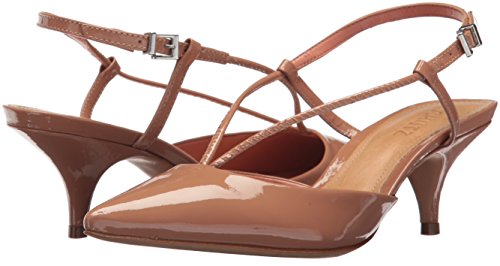 Product DescriptionPatent leather pump with kitten heel and open heel0