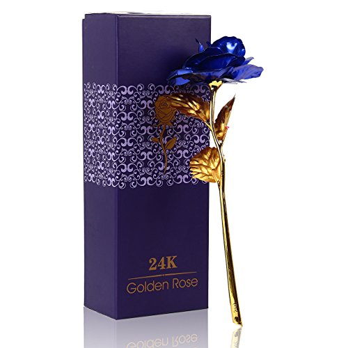 bouti1583 Artificial Rose Romance Golden Flower Birthday Valentine Mother's Day Anniversary Gift Home Decoration 10 Inch Blue