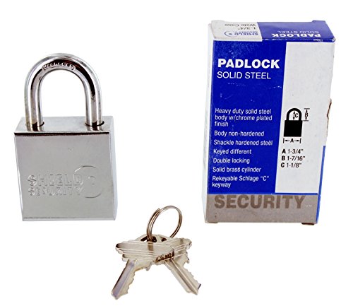 Shield Security 1.75 Inch Heavy Duty Commercial Grade Chrome Plated Hardened Solid Steel Key Padlock