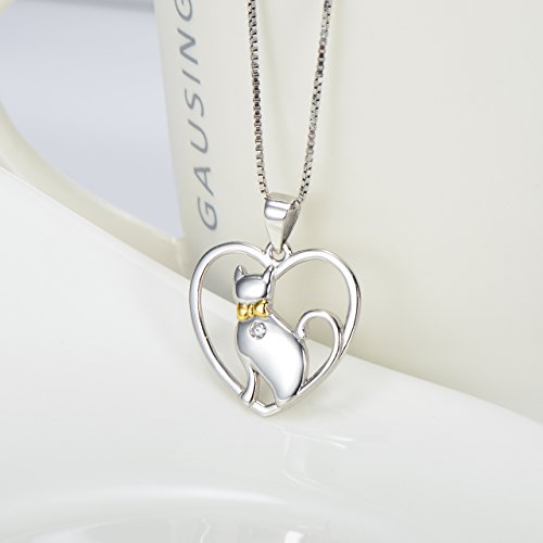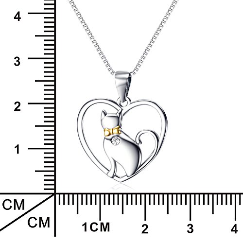 -. Feature : 100% 925 sterling silver,24K Gold,AAA Cubic Zircon / Gold Silver Hear Cat Pendant Size:25.3*20.4 mm / Box Chain Length:18",Width:0.8mm,With SP.R.Ing-ring clasp / 925 silver cute lovely lucky heart cat necklace is very suitable for all women and child,cat symbol of lovely,cat in the heart sumbol of you are lovely and cut in my heart / Come in an elegant jewelry gift box, perfect for any gift giving occasion, great Christmas gifts, Thanksgiving gifts, Birthday gifts for girls, teens, women