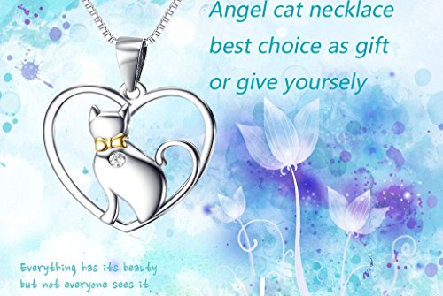 -. Title : YFN Christmas Birthday Silver Jewelry Gift 925 Sterling Lovely Heart Cat Necklace