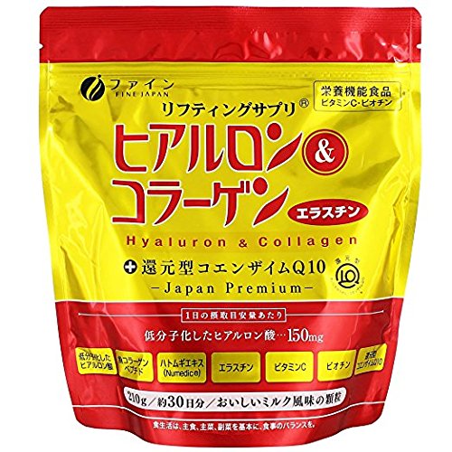 A lifting supplement: Lifting regains youthful vitality in your skin by renewing its elasticity and firmness. As FINE's newest conceptualization, our lifting supplement aims to incorporate skin and body beauty into your daily lifestyle effortlessly and effectively. Our product provides 150mg Hyaluronic acid, 5,250mg collagen, 15mg Elastin, 450mg Pearl coix extract, 100mg Vitamin C and 45μg Biotin. In addition, this product contains Kaneka Q10 (Ubiquinol). The powder form is easy to melt and instantly ready to go-dissolve it in your favorite beverage of choice and enjoy your new lifting supplement. build your beauty from within.This pouch type contains 210g which is for 30days and more than the contents of can type(196g).Feature