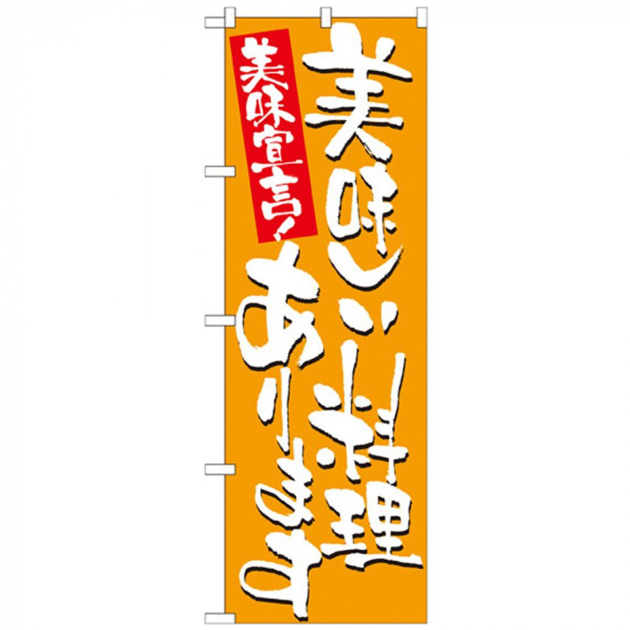 店頭などにおすすめです。 生産国:日本 素材・材質:ポリエステル 商品サイズ:(1枚)W600×H1800mm ※サプライヤー直送品 ご注文後5~6営業日後の出荷となります【商品名】Nのぼり 7155 美味しい料理あります