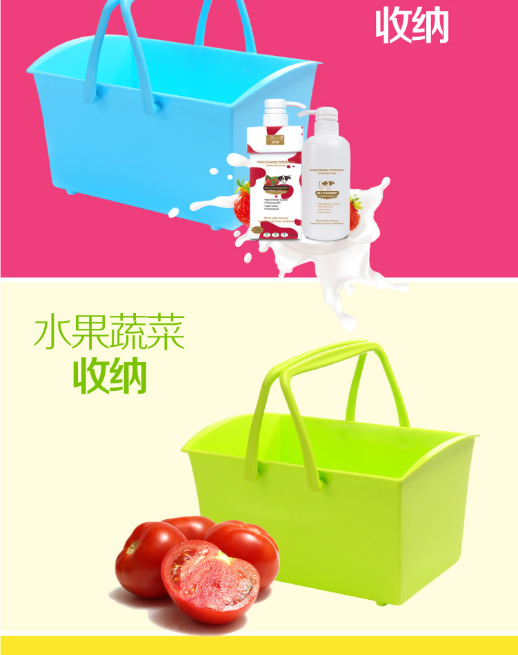 塑料篮超市购物篮水果手提菜篮子洗浴收纳筐洗澡篮双提手