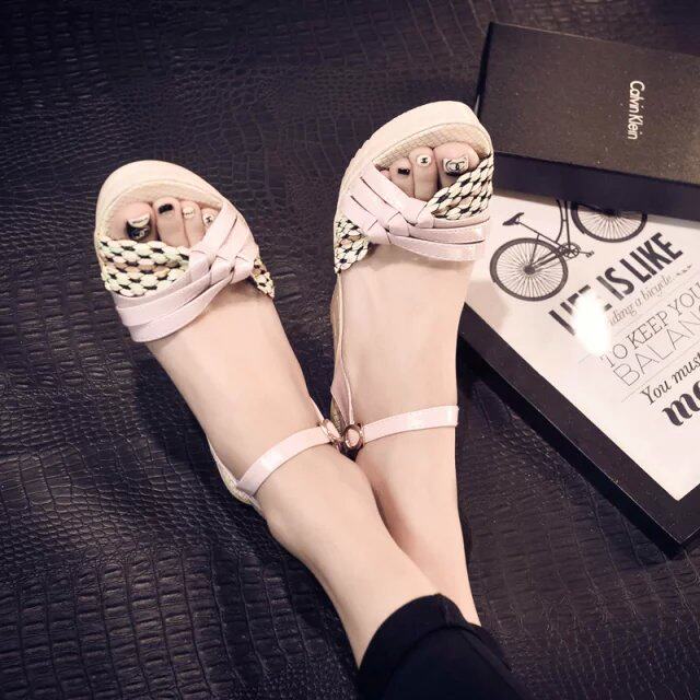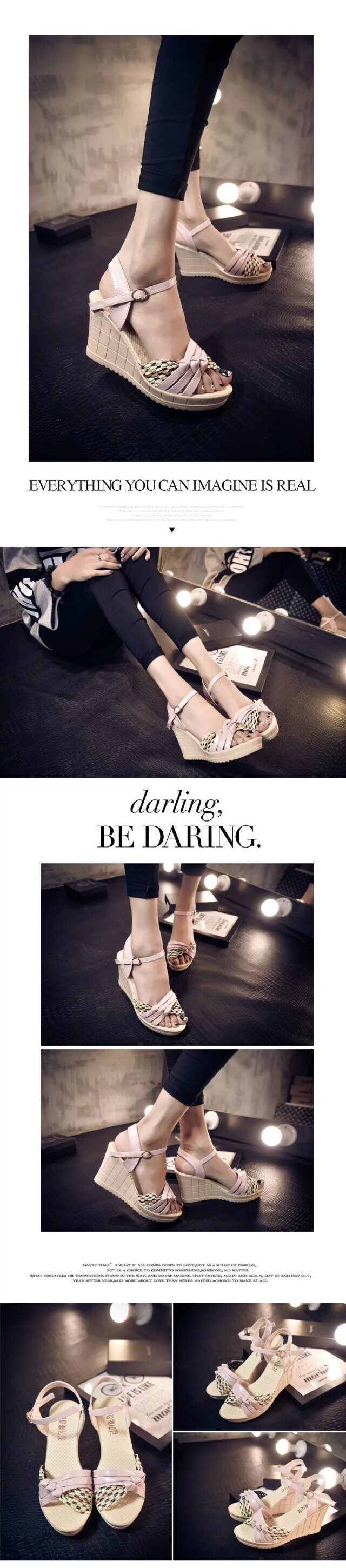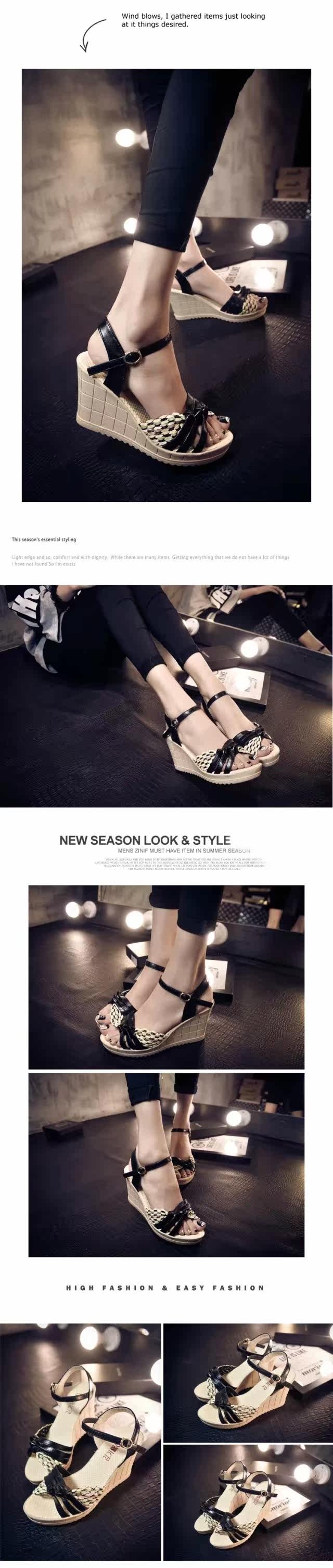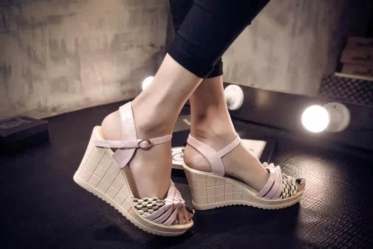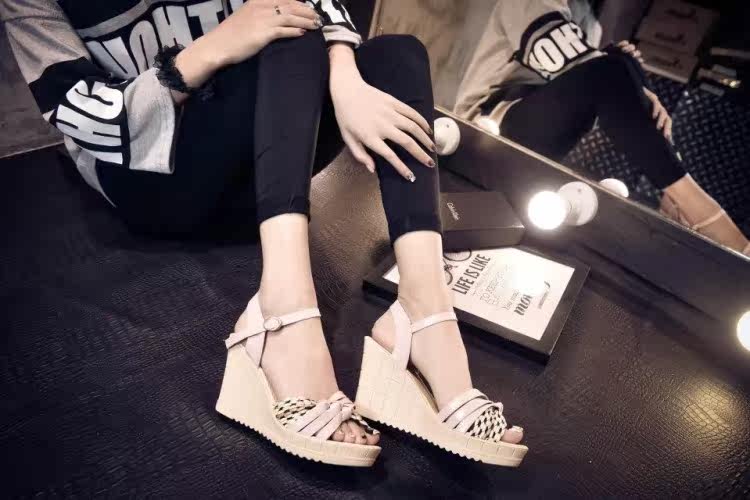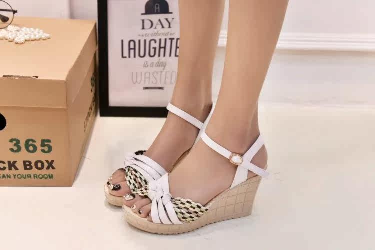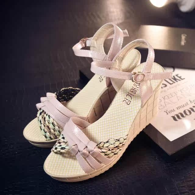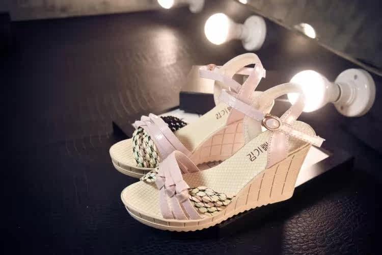 夏季新款韩版高跟凉鞋女坡跟防水台厚底松糕罗马凉鞋女鞋