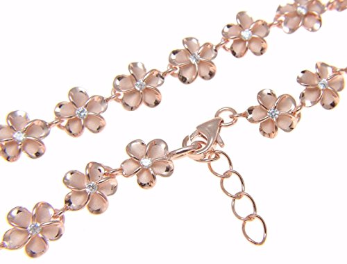 -. Title : 925 sterling silver pink rose gold plated Hawaiian 8mm cz plumeria flower anklet 9"+