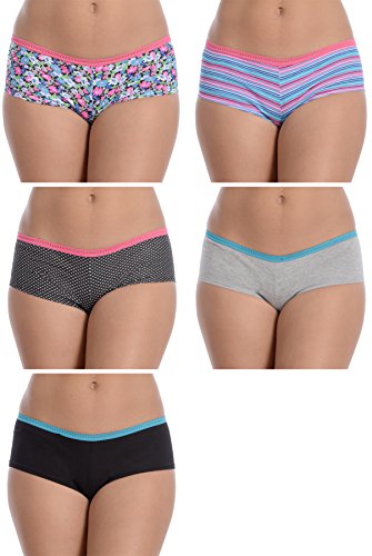 -. Binding : Apparel -. Brand : Jordache -. Department : womens -. Feature : Assorted 5 pack of a variety of fun and colorful graphic patterns and P.R.Ints / Boy leg cut panties / Stretchy elastic waistband / All day comfort / Click "Jordache" to view more of our collections! -. ProductGroup : Apparel -. ProductTypeName : UNDERWEAR -. Title : Jordache Women's 5 Pack Cotton Stretch Assorted Boy Leg Panties
