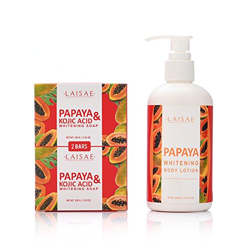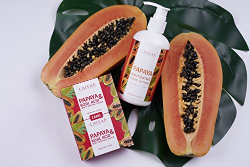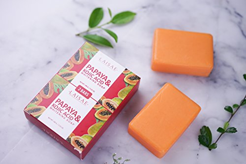 PREMIUM QUALITY INGREDIENTS: The LAISAE skin whitening soap has a unique formula of the best natural ingredients that will give your skin the treatment it deserves. The soap's main ingredients are papaya and concentrated kojic acid, and it also has an amazing blend of coconut oil and vitamins that will give you the results you need.