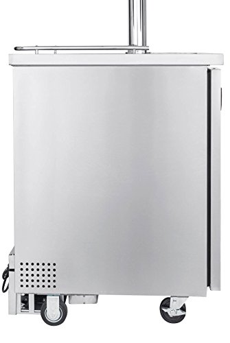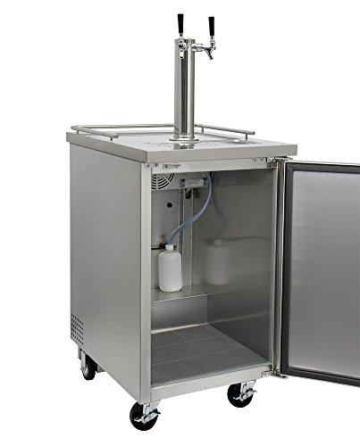This single two tap commercial grade kegerator can go from your small restaurant to a catering event, or from the office break room to an outdoor barbeque! Preserve the quality and flavor of your beer while serving it at the perfect temperature with the Kegco XCK-1B-2 Dual Faucet Commercial Kegerator. This beer dispenser is extremely versatile thanks to its two taps and the locking 4" wheels that it is mounted on. Not only can multiple chilled and tapped beverages be offered to your guests and customers at one time, but it's function can change due to it's mobility. Don't limit yourself to just beer either! This unit can also be used to dispense wine, soda and even cold brewed coffee or kombucha from up to four 5 gallon kegs. The keg refrigerator features a knockout that allows you to place your CO2 tank outside the unit, leaving you more room inside for kegs! 4" locking casters make this beer dispenser easy to move, while the built-in drip tray and steel interior make it easy to clean. A 1/7 hp compressor provides cooling and cool air is fan-forced into the tower to ensure your beer is cold all the way up to the faucet. It is designed to work with a 3" diameter beer tower, and Beverage Factory offers the ability to add a custom draft system with our top quality selection of regulators, couplers and fittings. Has a stainless steel finish that will match industrial spaces and existing kitchen appliances. Direct Draw kit not included.Feature