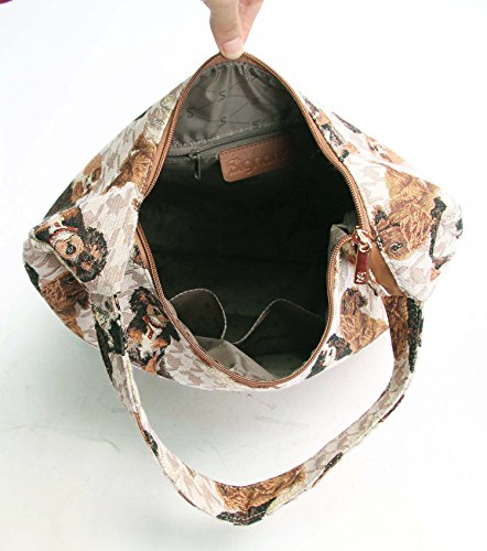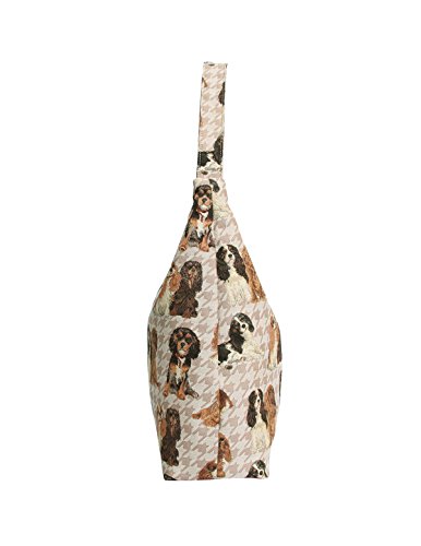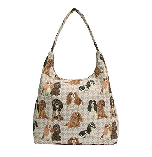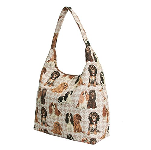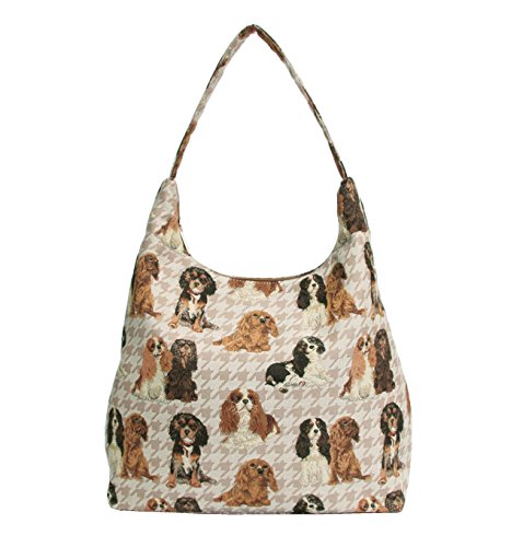 Signare Women’s Fashion Canvas Tapestry Top Zip Hobo Shoulder Bag Beach Bag in Cavalier King Charles Spaniel Design (HOBO -KGCS)