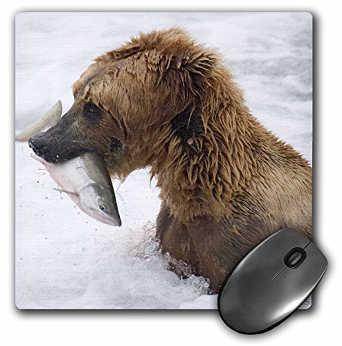 3dRose LLC 8 x 8 x 0.25 Inches Mouse Pad, Brown Grizzly Bear with Salmon (mp_45693_1)