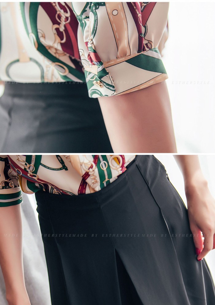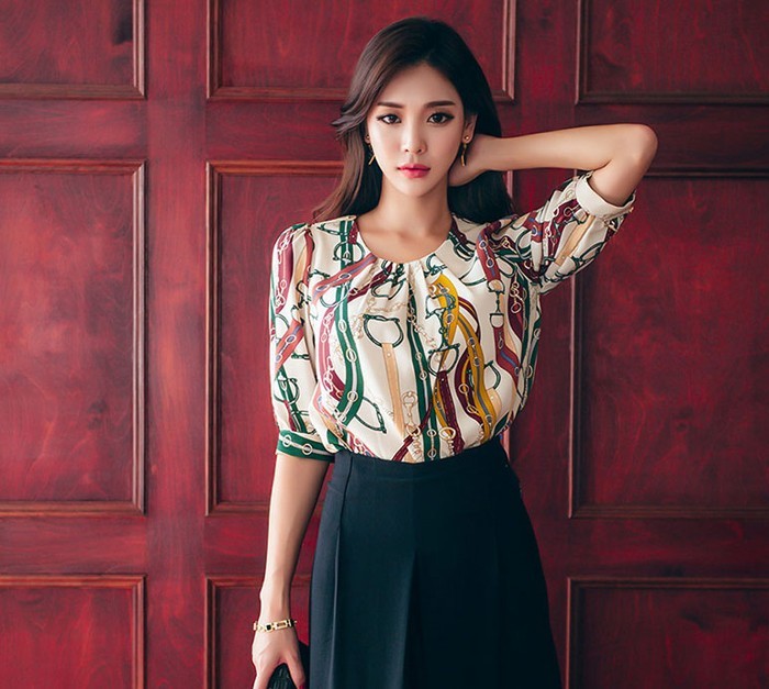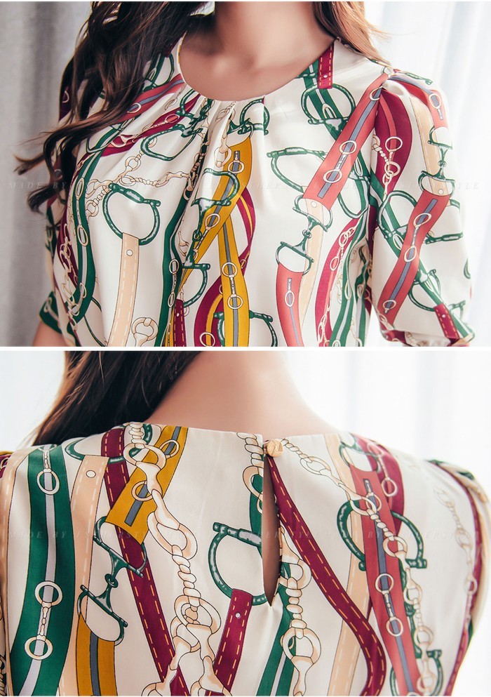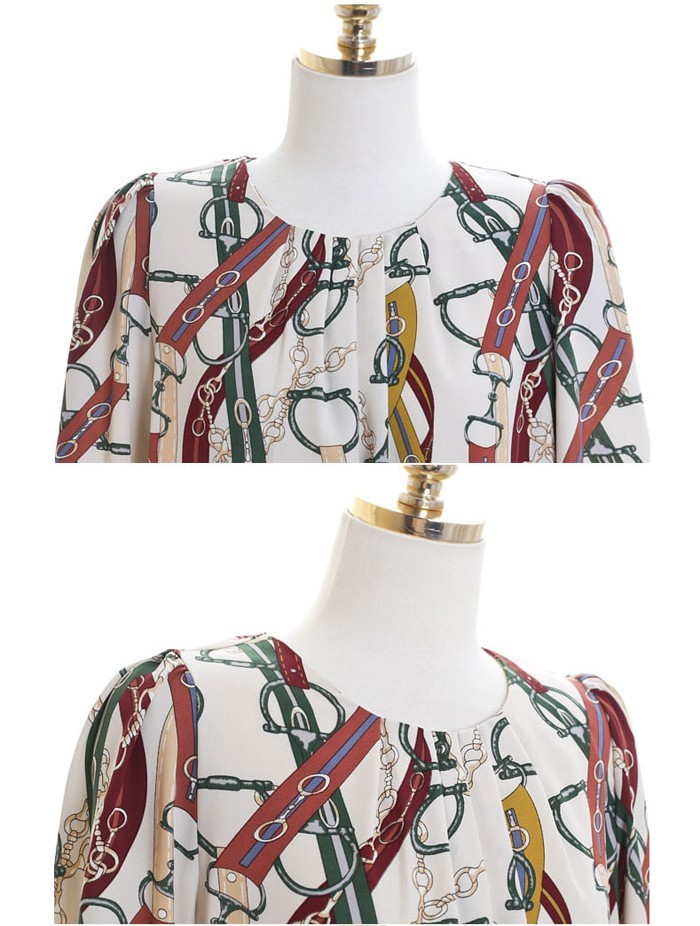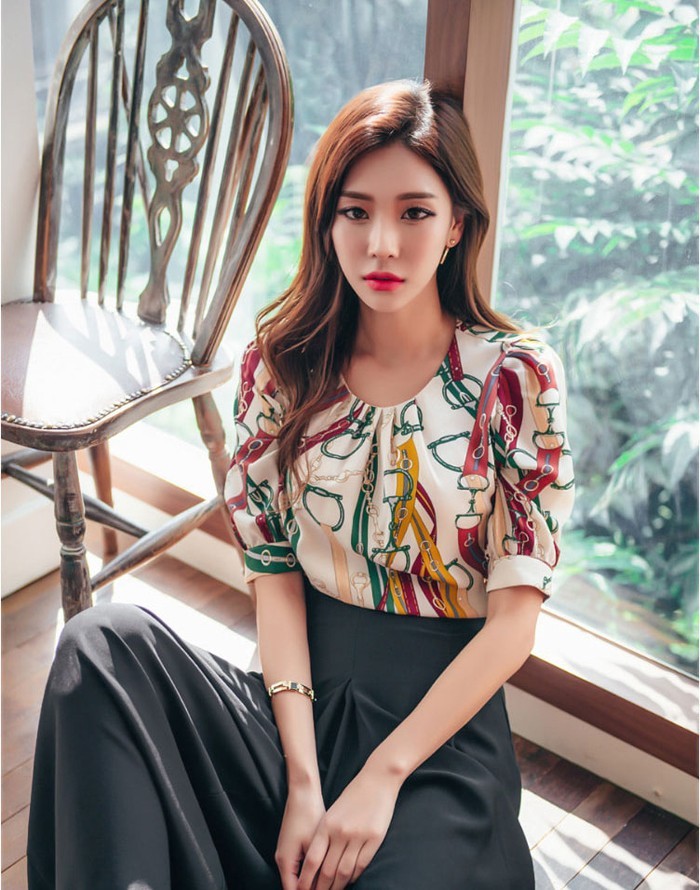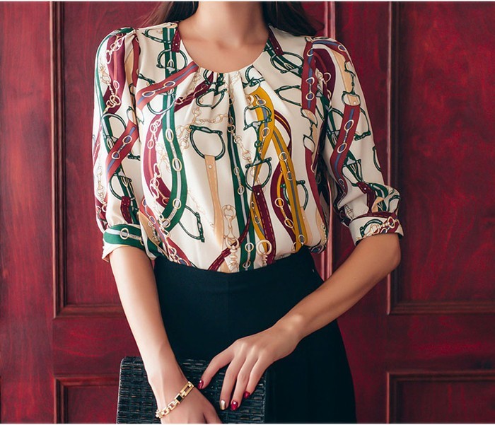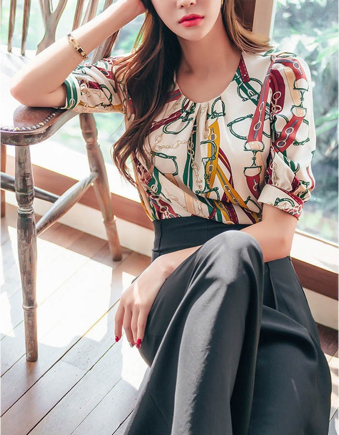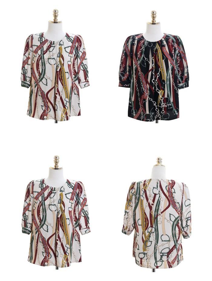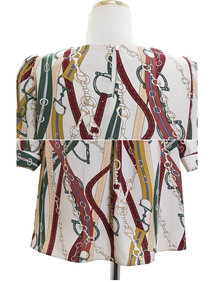 商品名:ブラウス プルオーバー きれいめ 半袖 レトロ柄