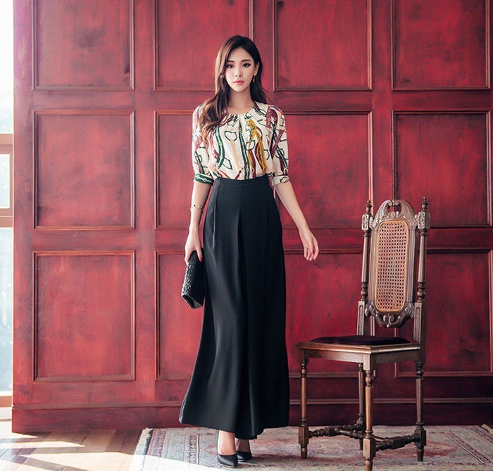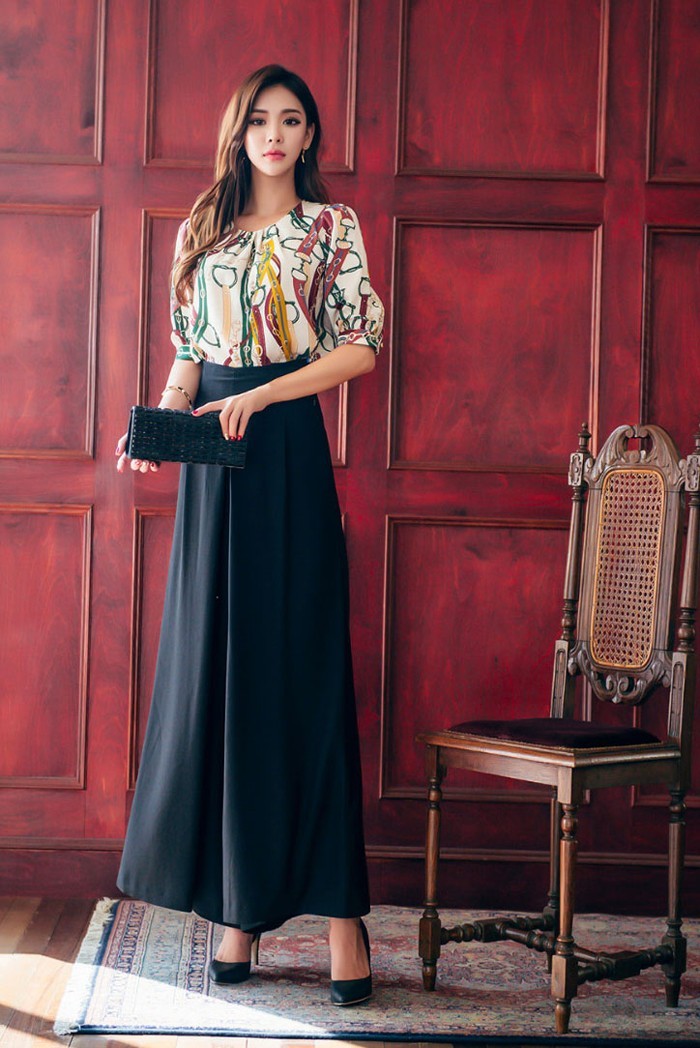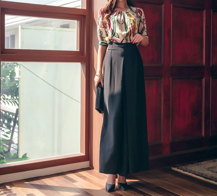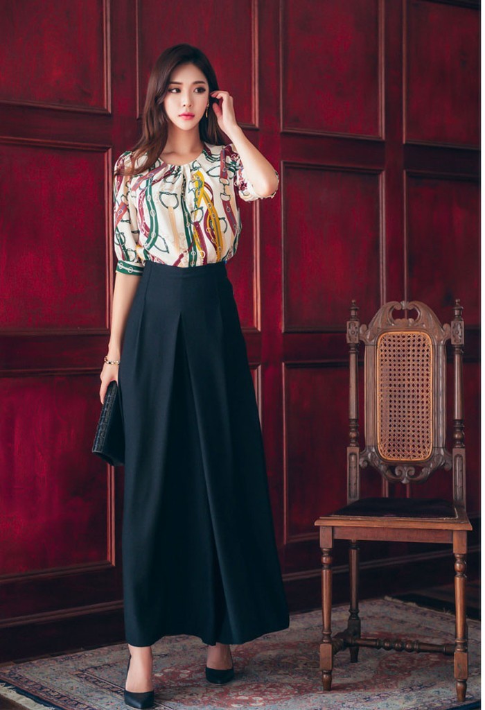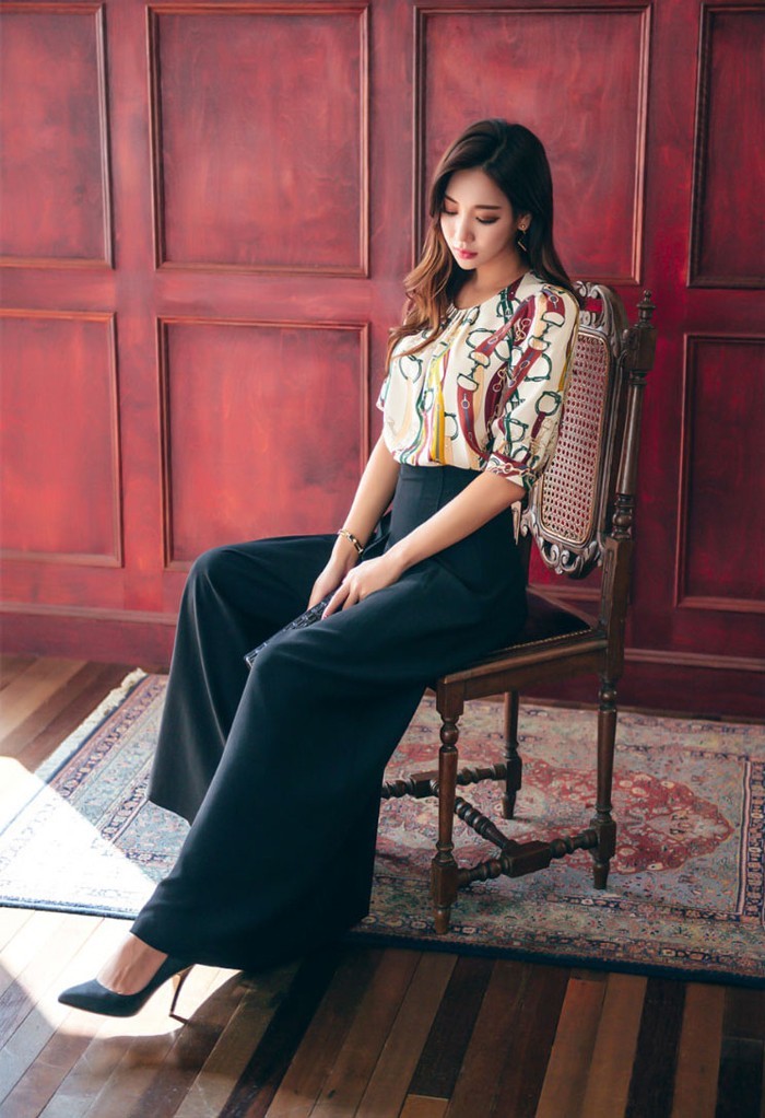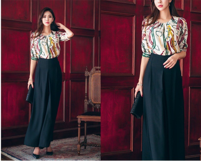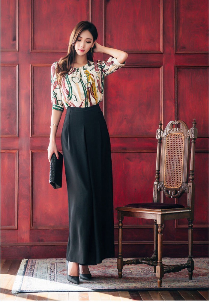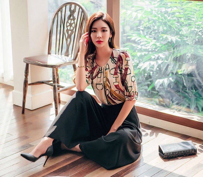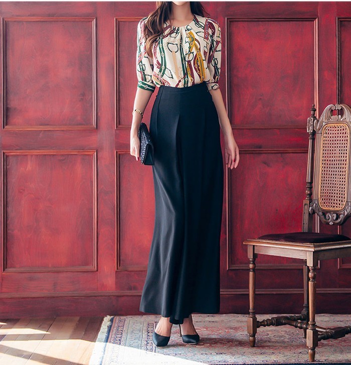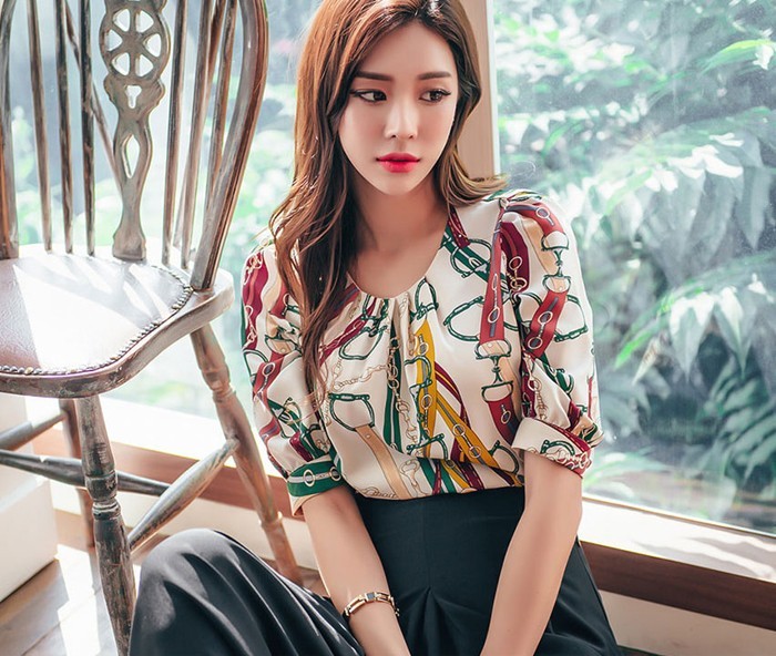 商品名:ブラウス プルオーバー きれいめ 半袖 レトロ柄