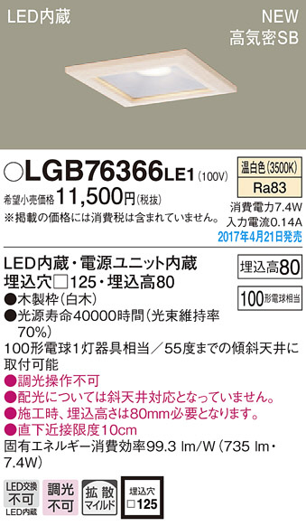 ●寸法(mm):埋込穴□125・埋込高80