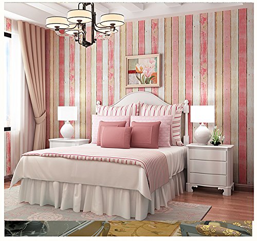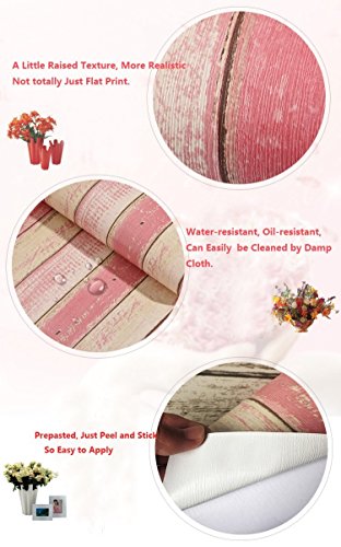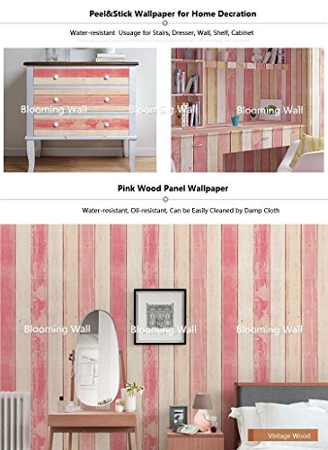 -. Title : Blooming Wall Distressed Wood Panel Peel and Stick Wall Decor Wallpaper, Pink&Beige