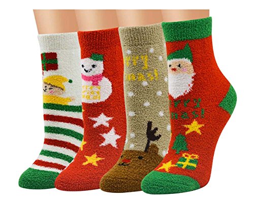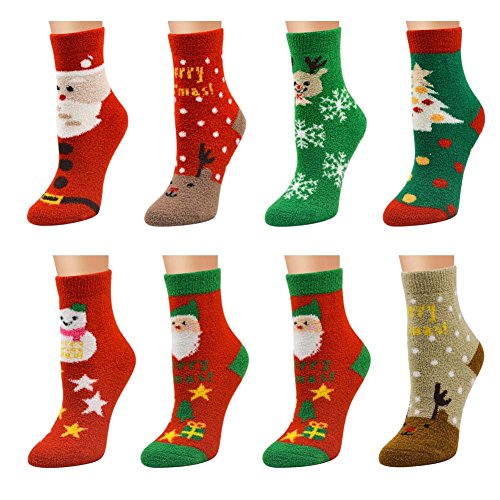QHZHANG 8 Pack Women Christmas Socks Warm Fuzzy Fluffy Socks (A)